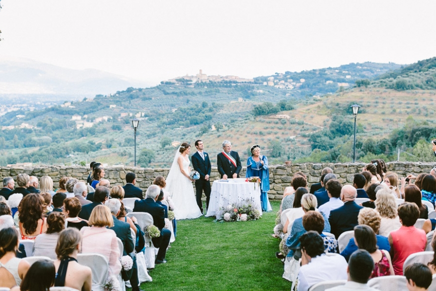 The ceremony was held on the lawn with the stupendous view overlooking the Umbrian hills.